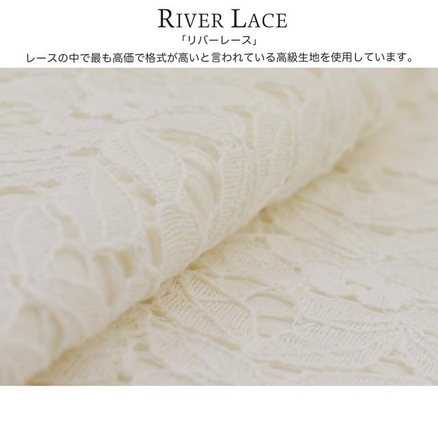 レースの中で最も高価で格式が高いと言われている「リバーレース」を使用しています。コーディネート済しわふわ兵児帯が付属します。レース素材はナチュラルで優しい風合いが魅力です。