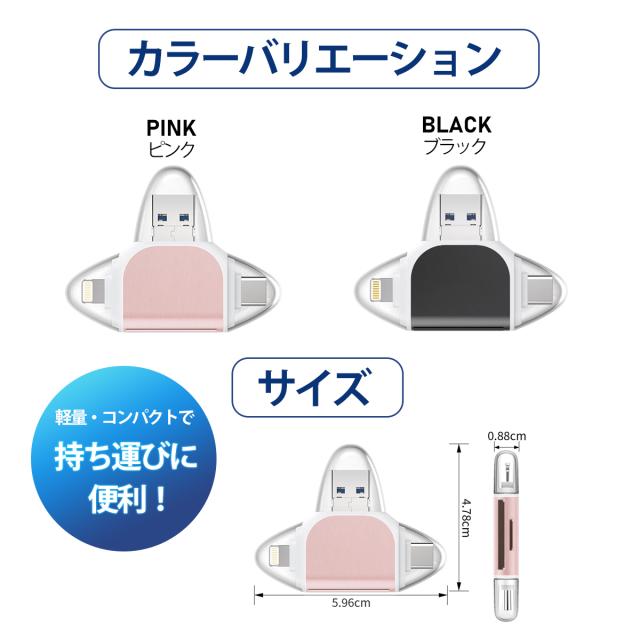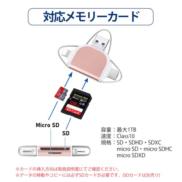 スマホ カードリーダー 1TB対応 SDカードリーダー iPhone バックアップ USBメモリ 写真 保存 データ スマホ マイクロSDカードリーダー SDカードカメラリーダー