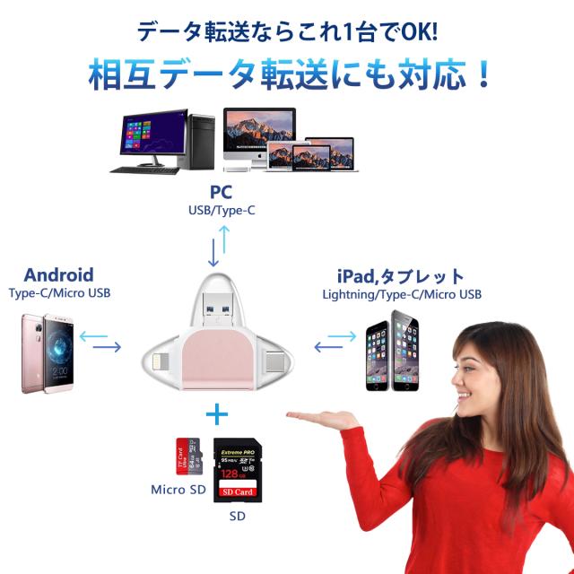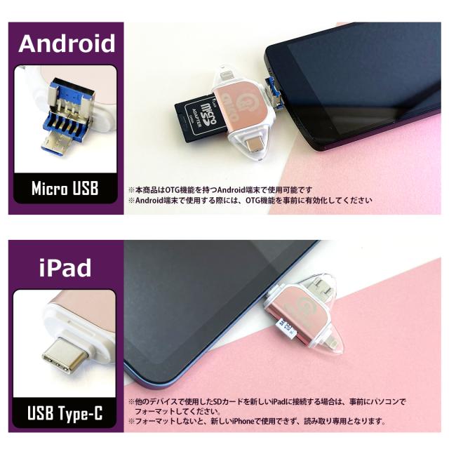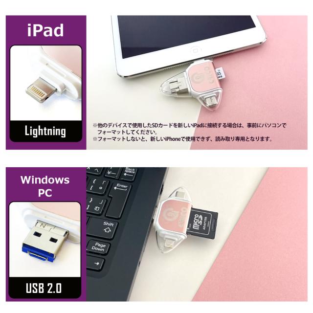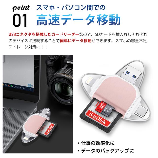 スマホに溜まった写真の整理に! SDカードリーダー iPhone カードリーダー バックアップ USB USBメモリ 写真 データ スマホ マイクロSDカードリーダー