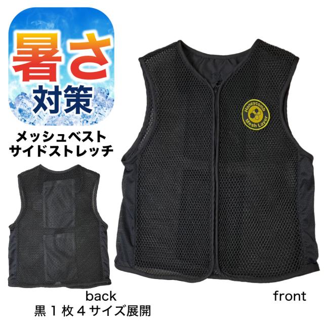 【抜群のフィット感】サイドストレッチ生地で体に密着!ハニカム構造メッシュベスト第2弾。背面2ポケット仕様で効率冷却。空調服のインナーに最適な薄型設計(※保冷剤別売)