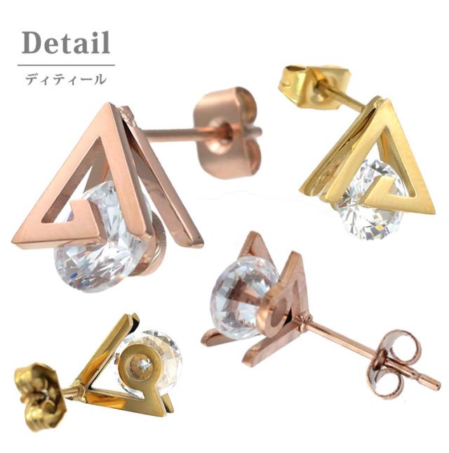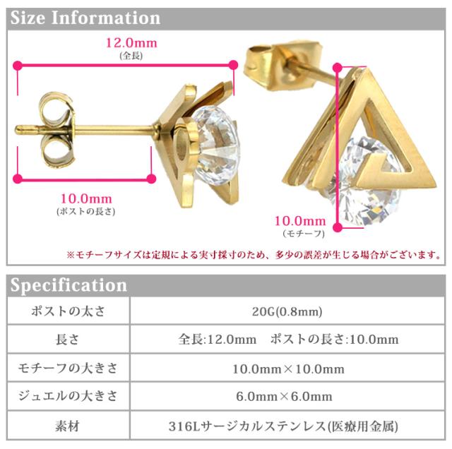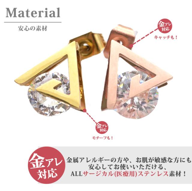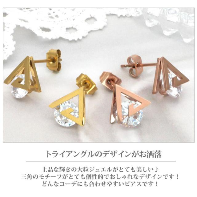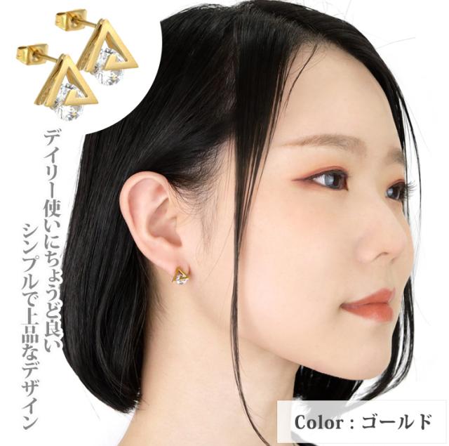 ピアス 金属アレルギー対応 ステンレスピアス トライアングルジュエルピアス スタッドピアス 両耳用 316L