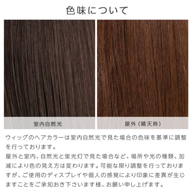 | その他 | 前髪分け目自由 ドライヤー、コテ、アイロン等で好みの髪型に整えることができます。 「耐熱最大温度150度」 シャンプー、トリートメント可能。洗髪する際は手洗いしてください。洗髪後は水気をタオルでふき取り、自然乾燥させるかドライヤーで乾かしてください。金属使用 |