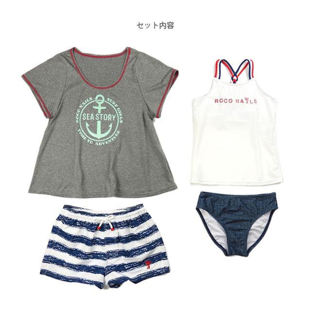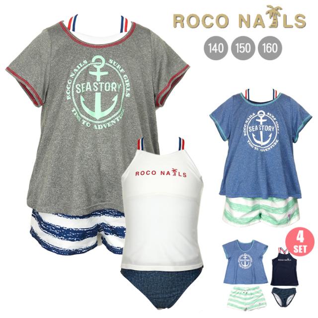 ROCO NAILS キッズ・ジュニアタンキニ水着上下4点セット 140 150 160 ロコネイル セパレート水着 380355 子供 女児 No.sw3310