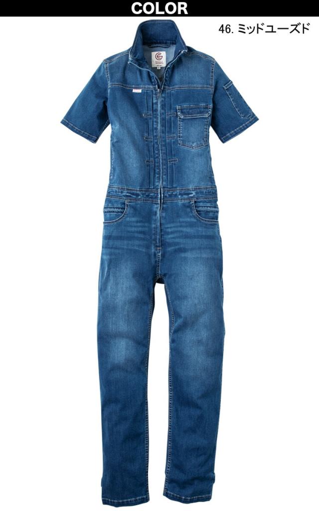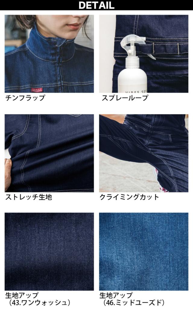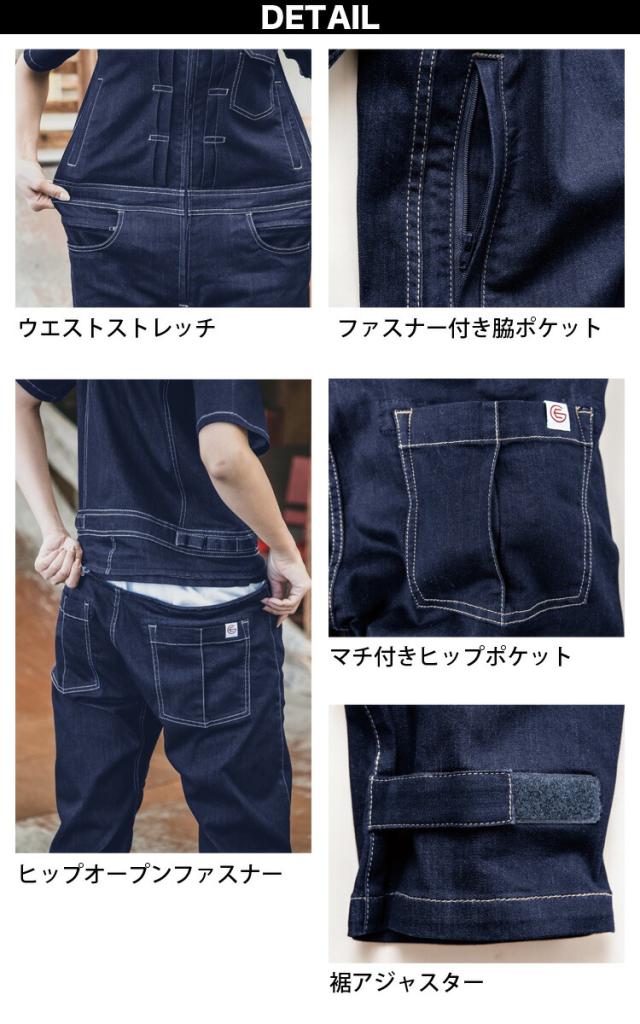 グレースエンジニアーズ 通年 半袖 ツナギ レディース デアリーウーマン デニム 作業着 作業服 年間物 つなぎ服 ヒップオープン エスケープロダクト ge-655