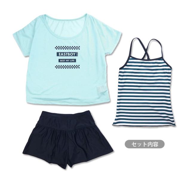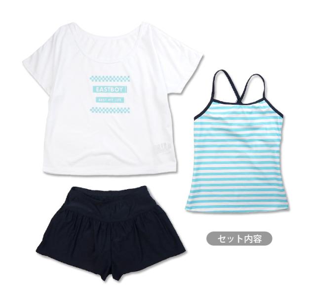 EASTBOY キッズ・ジュニア女児用セパレートスクール水着セット 130 140 150 160 170 イーストボーイ スク水 白 紺 No.sw3354