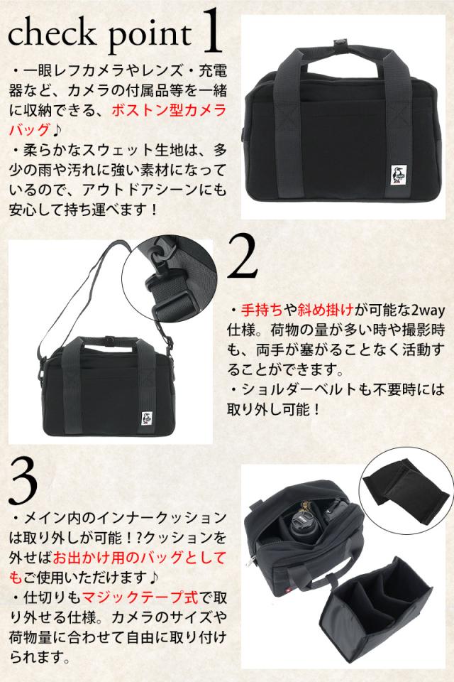 チャムス バッグ カメラバッグ ショルダーバッグ 2WAY CHUMS スウェットナイロン カメラボストン 5L CH60-3603 メンズ レディース キッズ ポイント10倍 送料無料 誕生日プレゼント ギフト ラッピング無料 【正規代理店】