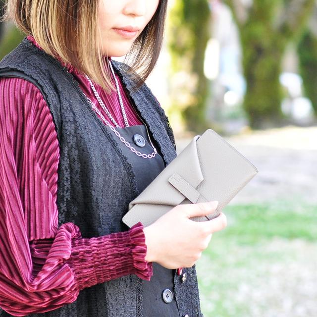 カードポケットを縦向きにすることで出し入れしやすく、本体サイズも一般的な長財布よりコンパクトにまとまります。