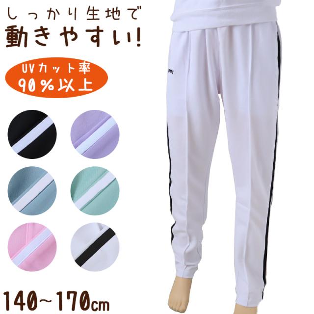 ジャージ パンツ キッズ 女子 女の子 かわいい ボトム 140 150 160 170 (パステル 女子 運動着 ボトム 紫外線 UV ロゴ プリーツ) (在庫限り)