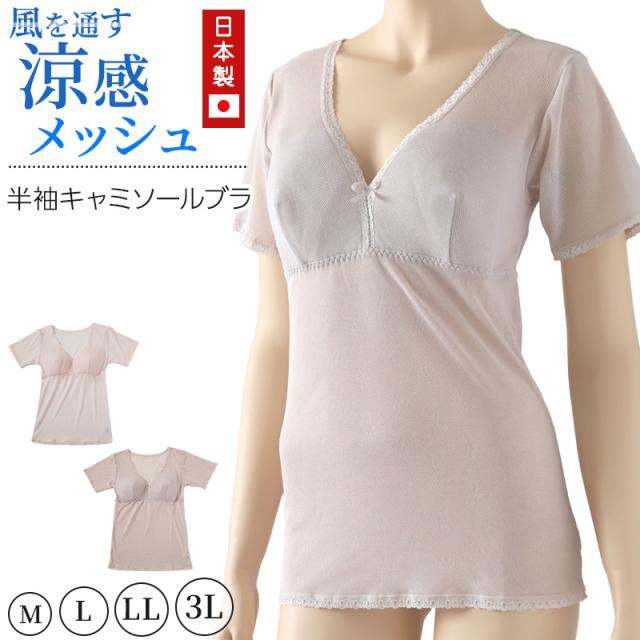 メッシュ ブラキャミ 半袖 レディース 日本製 M〜3L