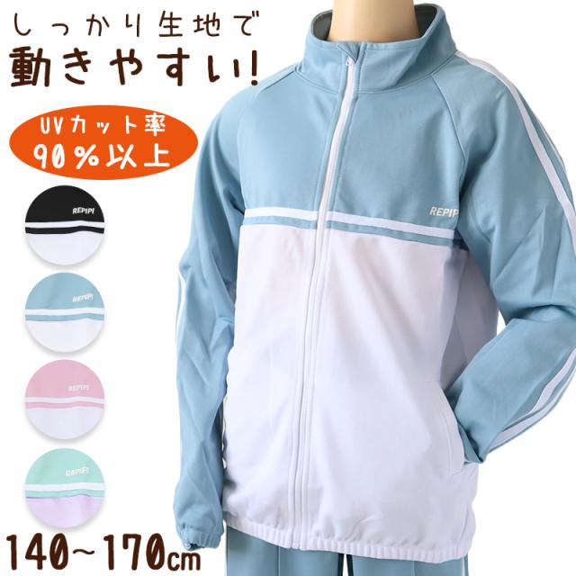 ジャージ 上 キッズ 女の子 ジュニア 子供 かわいい サイドライン 140 150 160 170 パステル 女子 運動着 アウター 紫外線 UV パーカー