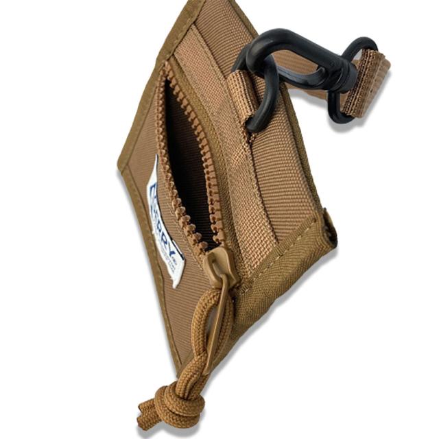 名刺、身分証明などが入る透明ケース部分と、小銭などが少量入るジップケースがついています。