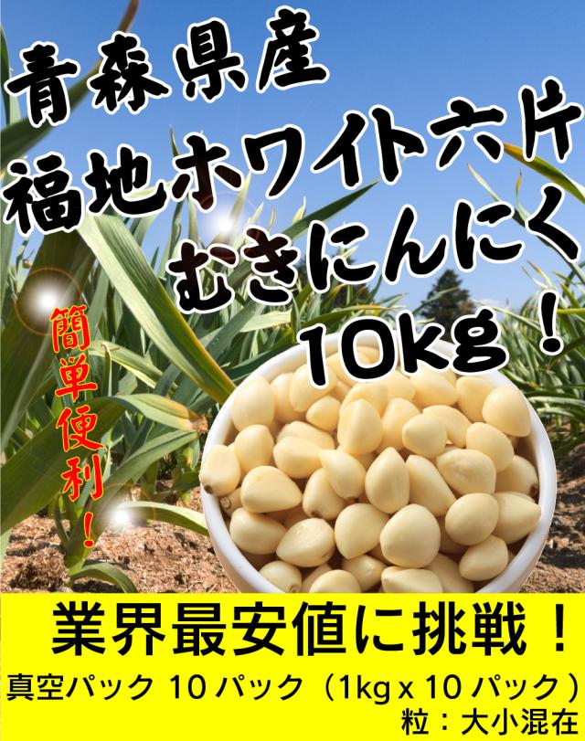 むきにんにく 10kg(1kgx10パック)青森県産 福地ホワイト六片 国産 クール便 真空パック 送料無料(沖縄・離島を除く)