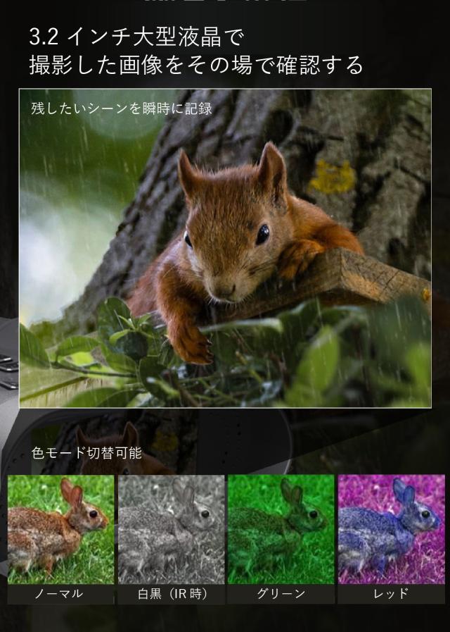 ★IP54 防水防塵仕様。雨が降っても心配不要!野外の動物観察に最適。