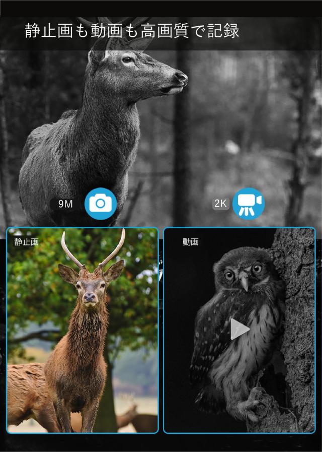 ★動画も静止画も高画質で記録。動画解像度MAX 2K 静止画解像度MAX 9M