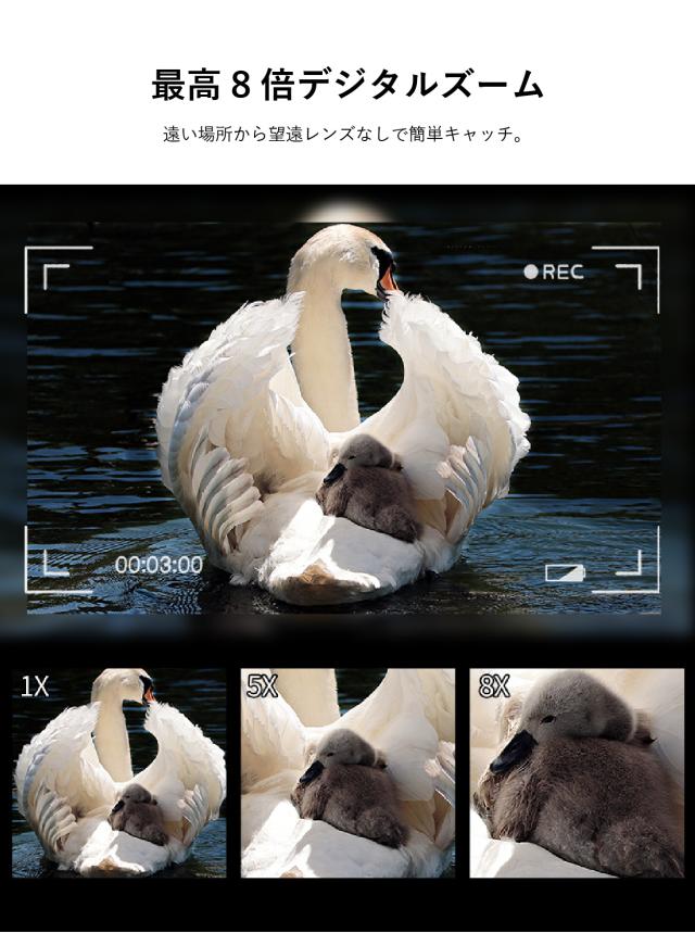 ★最高8倍デジタルズーム。遠い場所から望遠レンズなしで簡単キャッチ。