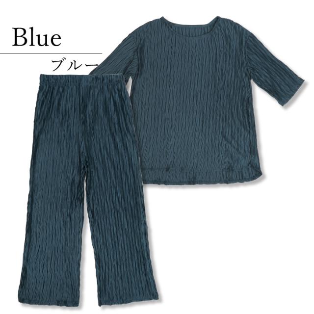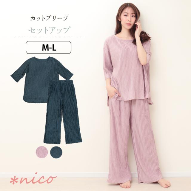 カットプリーツ 上下 セット (97175)[メール便不可]【ルームウェア パジャマ レディース 女性 部屋着 春物 夏物 春夏物 半袖 5分袖 夏 パンツ 寝巻 かわいい 涼しい 通気性 熱帯夜 】