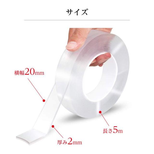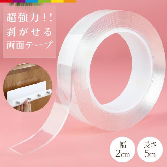 両面テープ 超強力 はがせる 2cm 透明 クリア 貼って剥がせる 家具 ソファ ラグ 固定 ずれない リモコン