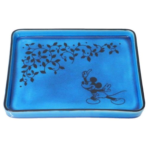 ミッキーマウスが幸兵衛窯の唐草模様のなかに入り込んだアートに、 色鮮やかなペルシャンブルーの釉薬を施し仕上げました。