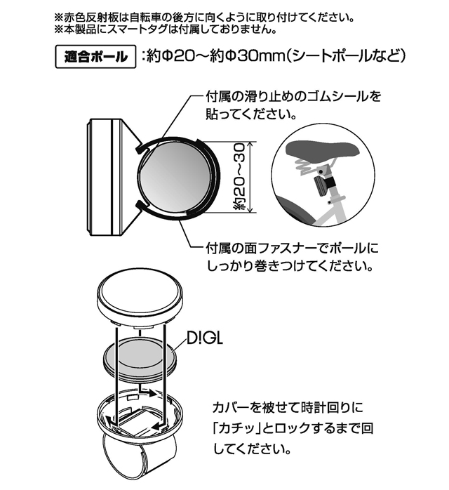 面ファスナーでポールに巻き付けるだけの簡単取り付け