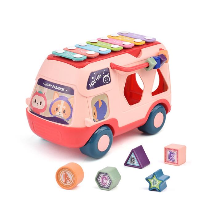 子供バスのおもちゃサウンドライト形状パズルノッキングピアノ教育ミュージカルおもちゃ 0-3 歳の少年少女
