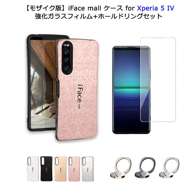 【モザイク版】iFace mall ケース Xperia 5 IV【ホールドリング+強化ガラスフィルム付き】 Xperia5IV SO-54C SOG09 カバー ストラップホール エクスペリア ファイブ マークフォー アイフェイス モール SO54C 5IV ラメカバー