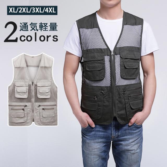 ベスト メンズ 夏 前開き ジレ メッシュ 前開き 薄手 お釣り ゴルフ 遠足 撮影用 作業着 農業 登山 超軽量 カメラマン 涼 敬老の日