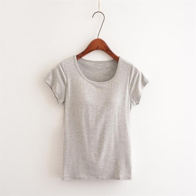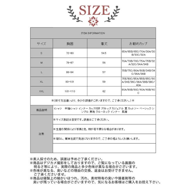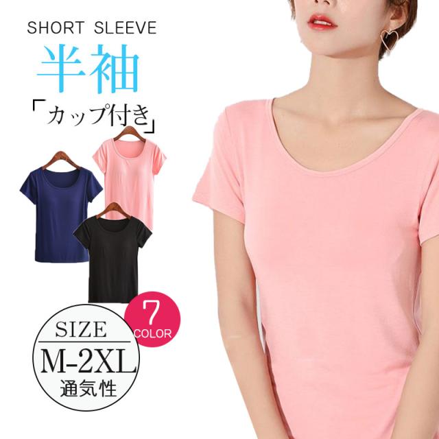tシャツ 半袖tシャツ インナー カップ付き ブラトップ カジュアル 夏 カットソー ベーシック シンプル 無地 クルーネック イ