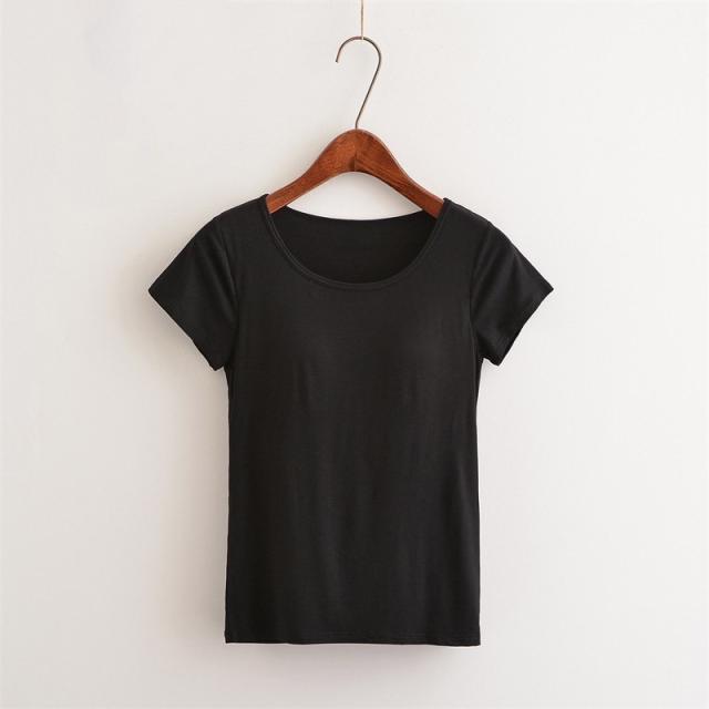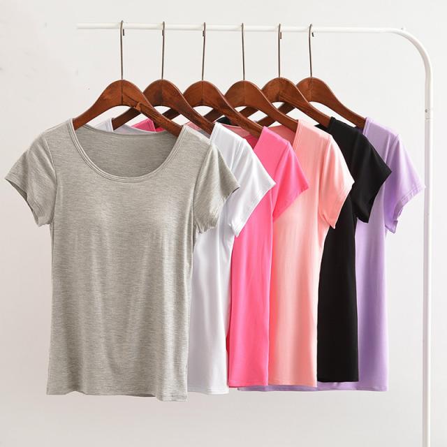 バストをホールドしてくれるブラカップの付いた半袖Tシャツは、着心地をとことん追求!
