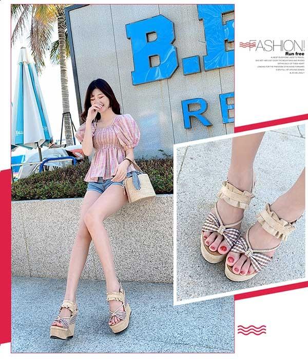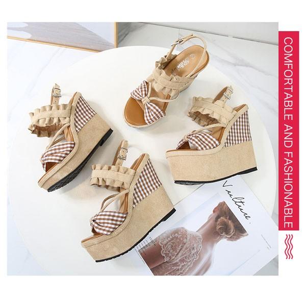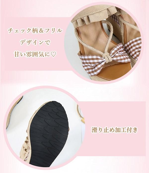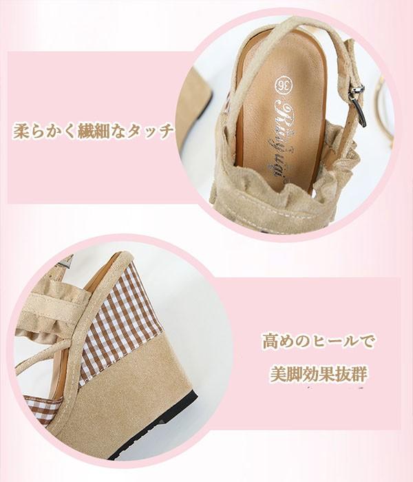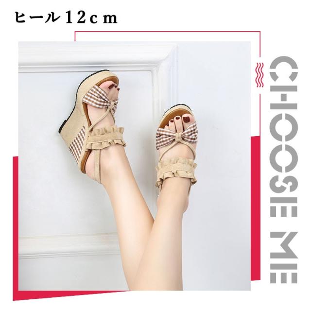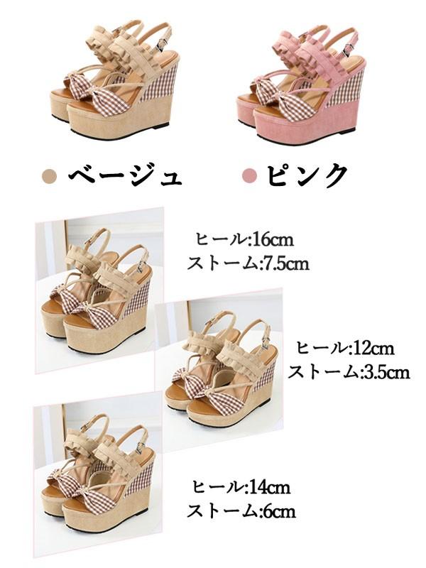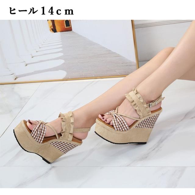 【レビュー投稿で+5%還元】ウエッジソール サンダル 厚底 レディース ヒール12cm 14cm 16cm ストラップ 美脚 可愛い チェック柄 フリル リボン 大人 ガーリー 甘い 滑り止め 小さいサイズ ベージュ ピンク 21.0 21.5 22.0 22.5 23.0 23.5 24.0 24.5 25.0 di025c9
