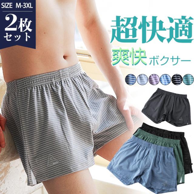 ボクサーパンツ メンズ 2枚セット アンダーウェア ストライプ柄 下着 ブリーフ インナー カジュアル メッシュ シンプル 蒸れに