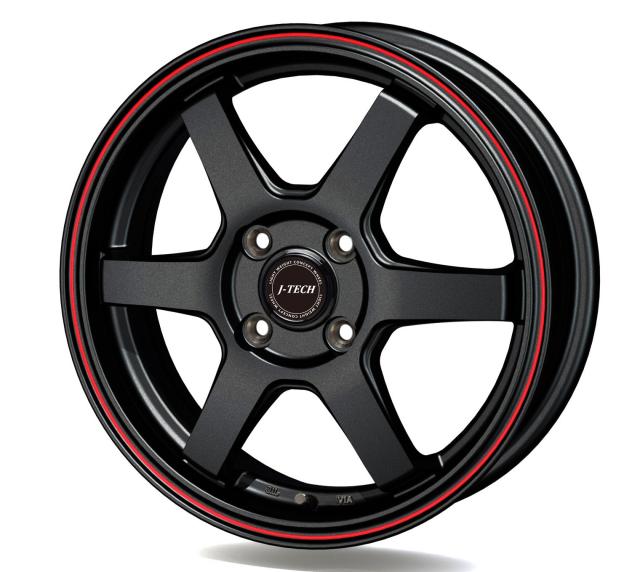 TRYALPHA J-TECH S-6 ブラックエディション 14インチ 4.5J +45 4-100 フラットブラック・レッドライン 4本で送料無料 トライアルファ 1本