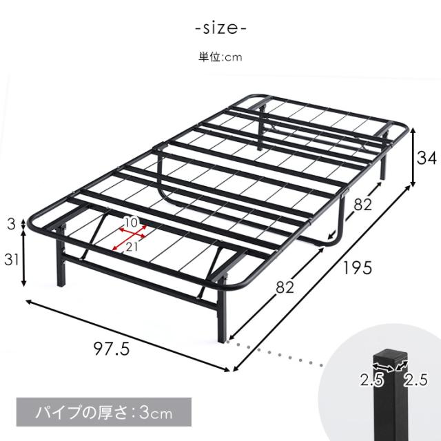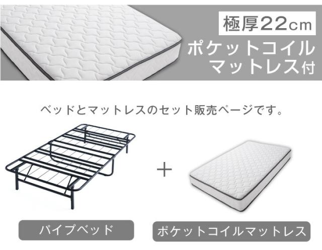 シングル ベッド マットレス付き 折りたたみ 極厚22cm ポケットコイル フレーム シングルベッド ベッドフレーム パイプベッド マットレス付 マットレス コンパクト 折りたたみベッド 折り畳み
