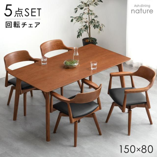 ダイニングセット 4人掛け ALL天然木アッシュ 回転椅子 5点セット 150cm テーブル ダイニングテーブルセット ダイニング ダイニングテーブル ダイニングチェア 回転チェア デザイナーズチェア 5点 【超大型】【後払/時間指定NG】