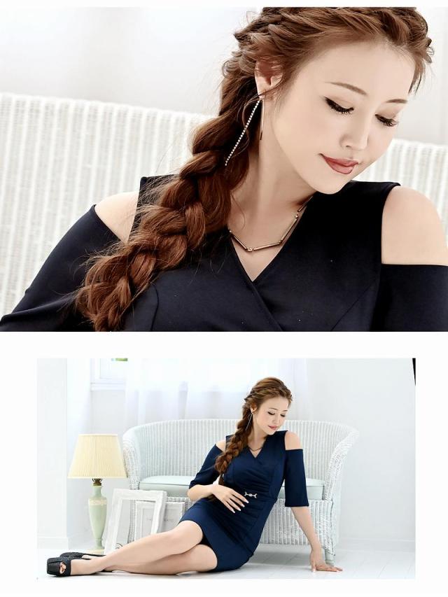 ☆オープンショルダーデザインが大人かわいい袖付きドレスは二の腕もしっかり隠せちゃう!