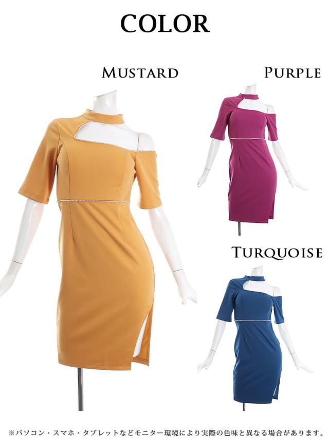 キャバドレス キャバ ドレス キャバクラ ミニドレス パーティードレス Ryuyu 袖付き 紫 黄色 ワンショル