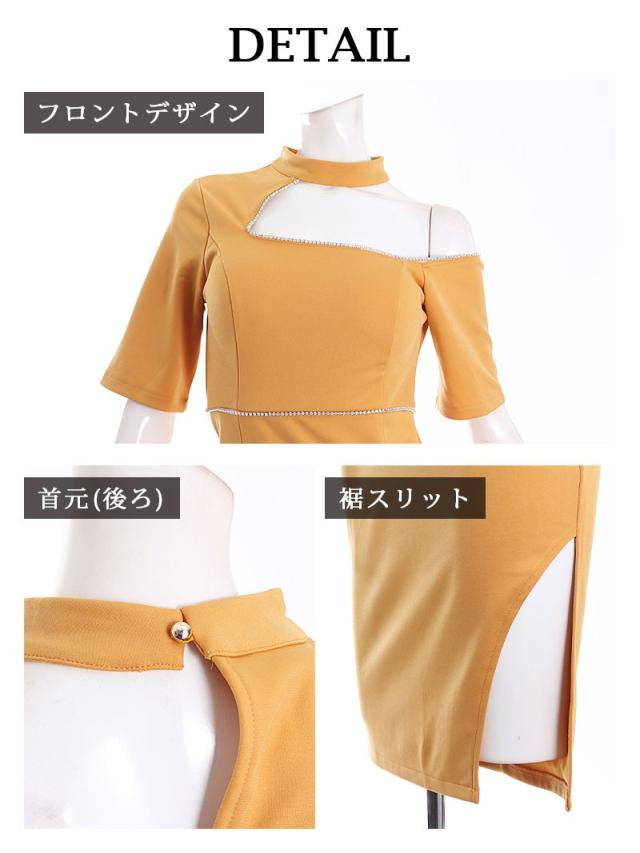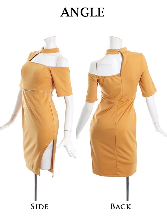 ☆アシンメトリーデザインが特徴的なタイトドレスは、膝丈スリット入りなので綺麗にボディラインを強調して目を惹くキャバドレス♪