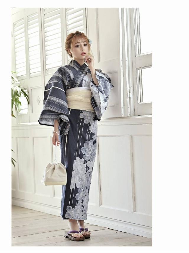 ☆女性らしさ溢れるストライプ×牡丹柄がどこか落ち着きを感じさせるレディース浴衣です。