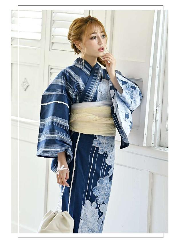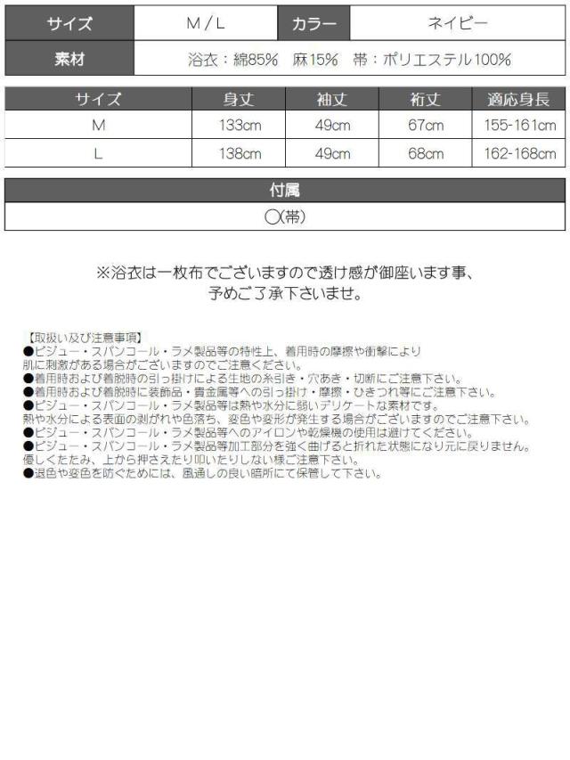 浴衣:綿85%、麻15%、帯:ポリエステル100%
