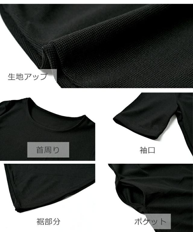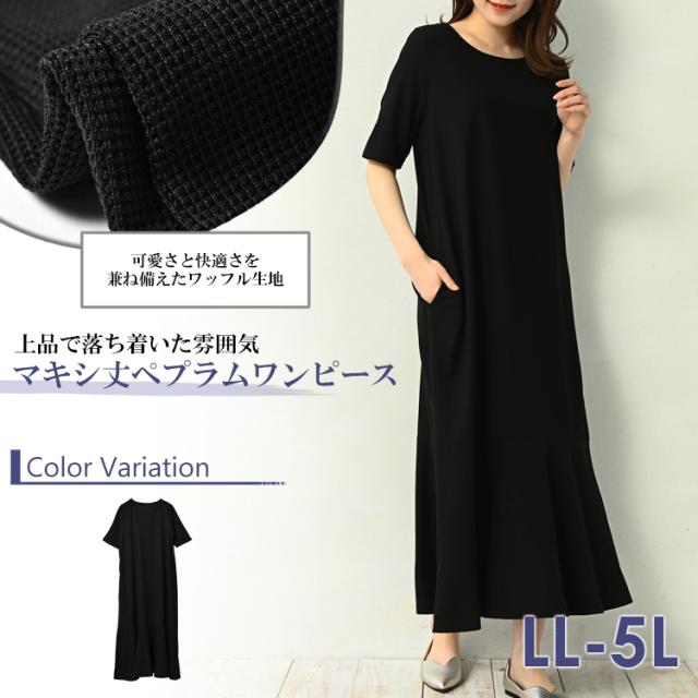 大きいサイズ レディース ペプラムワンピース 5分袖 ロング丈 ワッフル生地 マーメイド LL/3L/4L/5L ゆったりサイズ ぽっちゃり女子 プラスサイズ