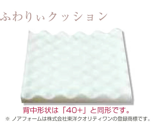 背中全体での耐圧分散を考え、プロファイルカット加工(凸凹構造)のノアフォーム※を採用した「点で支える」クッション構造。