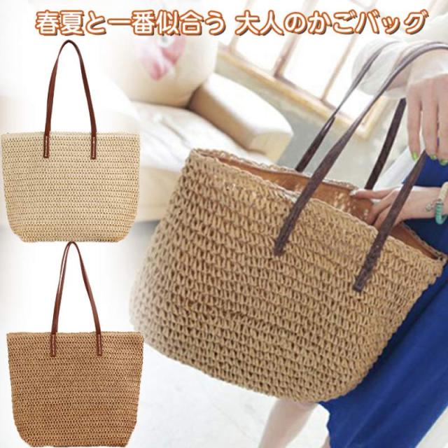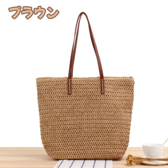 トートバッグ ショルダーバッグ レディース 草編みバッグ かばん 麦わら 鞄 かごバッグ 女性 手編みバッグ 手編み 肩掛け 手提げ オシャレショルダーバッグ