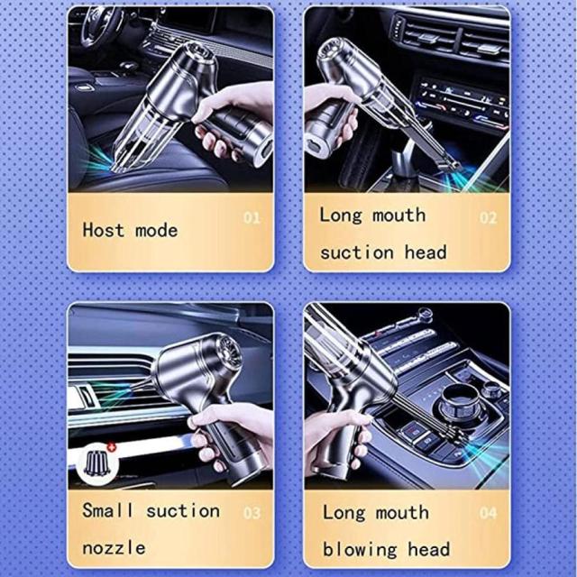 マルチファンクションミニ掃除機3 in 1、このハンドヘルド掃除機はコードレスで安心して、掃除をもっと便利にします。このハンドヘルド掃除機は、階段、キッチン、車、または手の届きにくい隅を掃除するために、自由にどこにでも移動できる軽量なコードレス設計を採用しています。