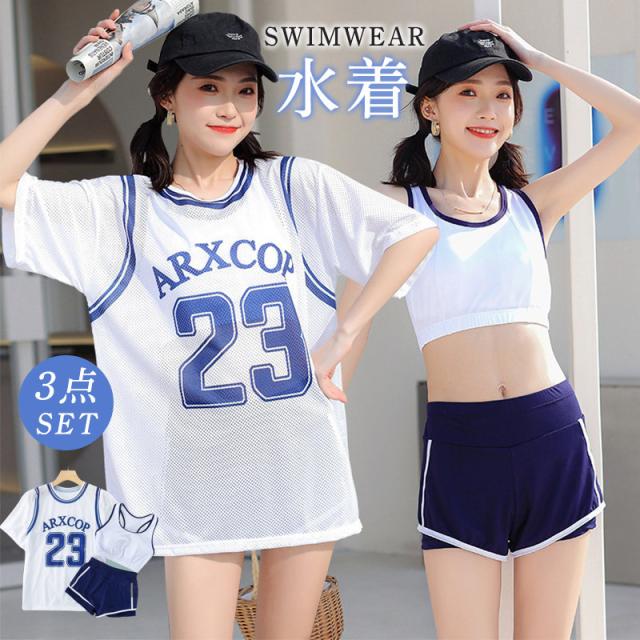 水着 レディース 体型カバー フィットネス水着 セパレート 3点セット 半袖 ショートパンツ ママ水着 競泳水着 スポーツ 運動