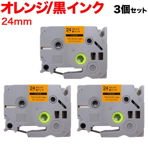 【メール送料無料】【送料無料】 ブラザー用(Brother用) ピータッチ 互換 テープ BPT-TZE-SC24D-3P (24mm/オレンジテープ/黒文字)