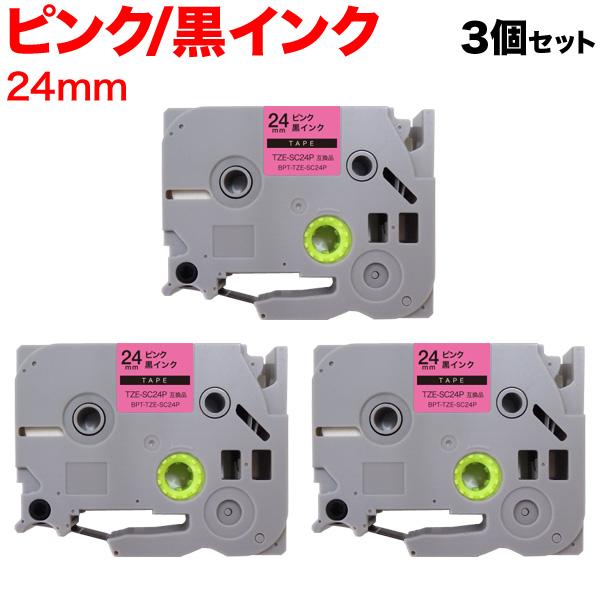 【メール送料無料】【送料無料】 ブラザー用(Brother用) ピータッチ 互換 テープ BPT-TZE-SC24P-3P (24mm/ピンクテープ/黒文字)