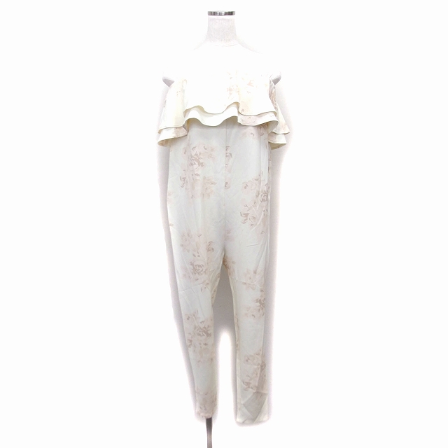 【中古】デュラス DURAS オールインワン サロペット ジャンプスーツ テーパード ベアトップ フリル 透け感 花柄 F