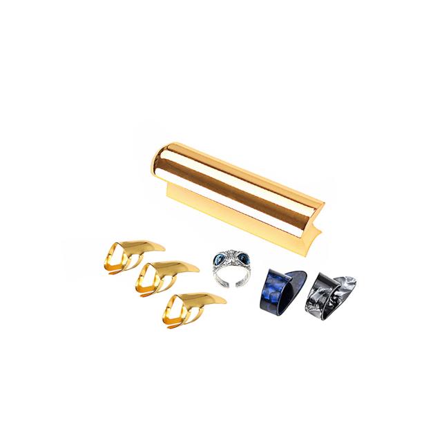 商品名:エレキギタースライダー + 指先メタルピック3個 + 親指セルロイドピック2個 + キャットアイリング1個