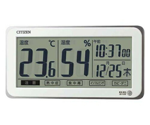 ●機能:高精度温湿度計/温度表示付/湿度表示付/環境目安表示付/24〜25時間以内の最低・最高値(温度・湿度)表示機能付/時刻表示付(クオーツ)/カレンダー付/掛置兼用(内蔵スタンド付)/電池寿命約2年/単3電池×2本付属