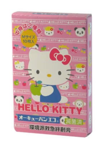 「オーキューバンエコ ハローキティ Mサイズ 10枚」は、ハローキティのプリントが入った、パッド付きのキャラクター絆創膏です。