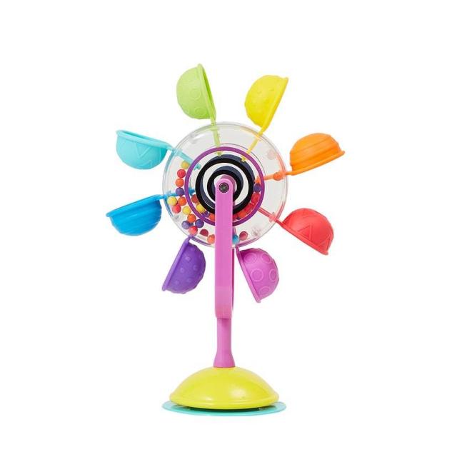 カップに水をかけるとクルクル回り虹のように見えるので赤ちゃんの興味をひきつけます。